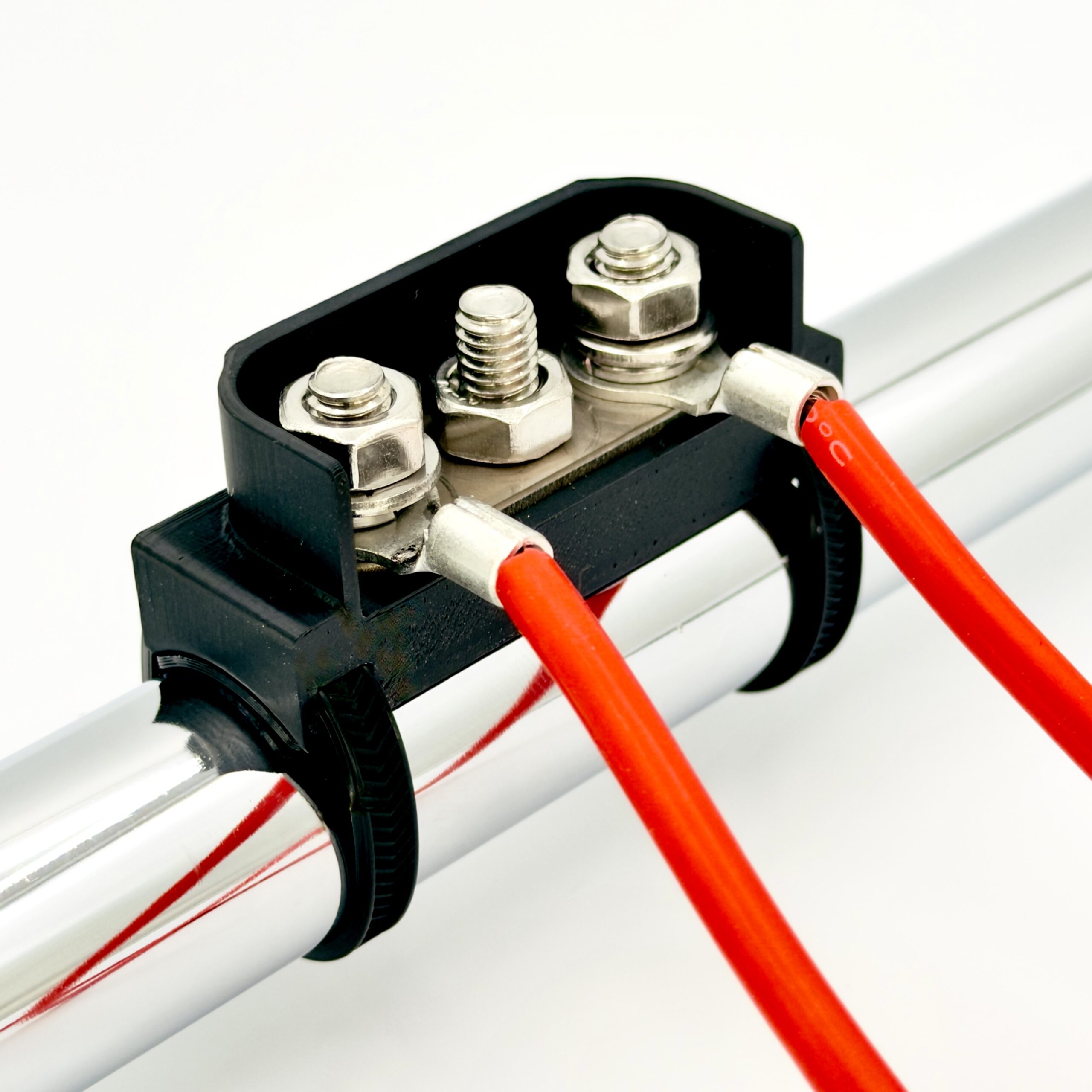 Our frame-mount wiring aids are designed to solve two problems at once; make solid connections that can easily be moved if needed, and provide cleaner ways to manage your wiring. First, find a portion of your motorcycle frame with at least 2 inches of straight steel tubing (usually under the gas tank is an ideal spot). Then, use the provided heavy-duty zip ties and secure the frame-mount wiring aid to the frame. Last, simply tighten the nut on our Frame-Mount Terminal series, or push up the clip on our Frame-Mount Lever Nut series to create a solid connection.